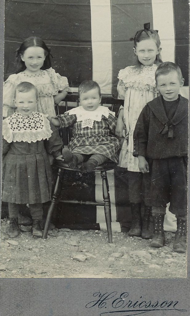 De fem var: Ingeborg Odlaug (Kinn) Melandsø (1900 – 1943), Judith Helga Melandsø (1901 – 1926), Hans Melandsø (1903 – 1953), Åse Oline Melandsø (1905 – 1972) og Liv Margot Melandsø (1907 – 1975). Bildet er trolig tatt ca 1909, og fotograf var H. Ericsson.