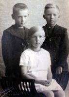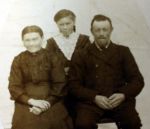 | Familieportrett - Edvarda Johanne Jensen, Harry Strand Jakobsen (adoptert/fosterbarn) og Jakob Bernhard Jakobsen