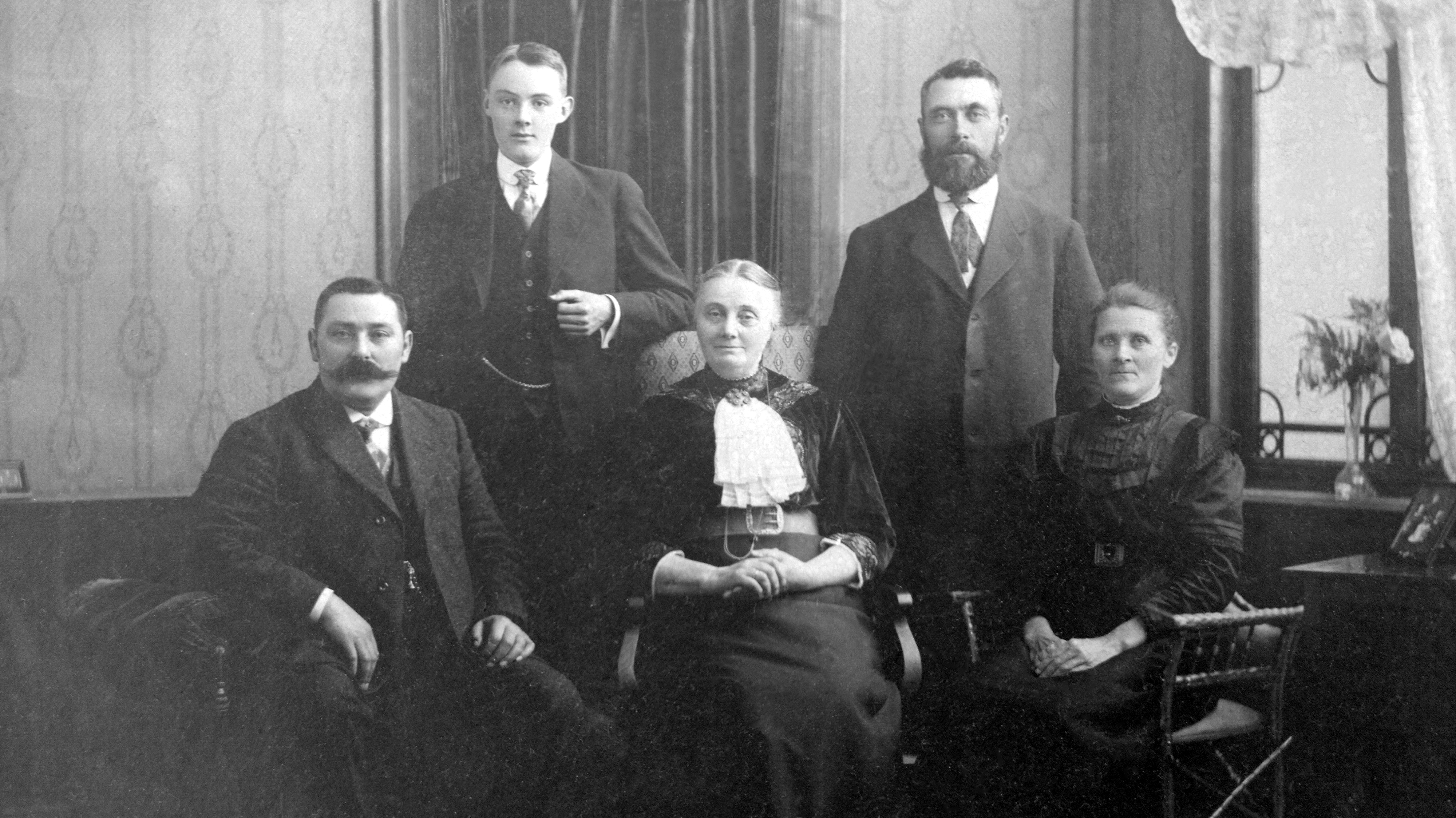 Petter, Guri Anna og Gunnar Kaspersen fra Kristiansund. Bildet er trolig fra Gunnars konfirmasjon ca 1910. De andre to (til høyre på bildet) er trolig faddere.