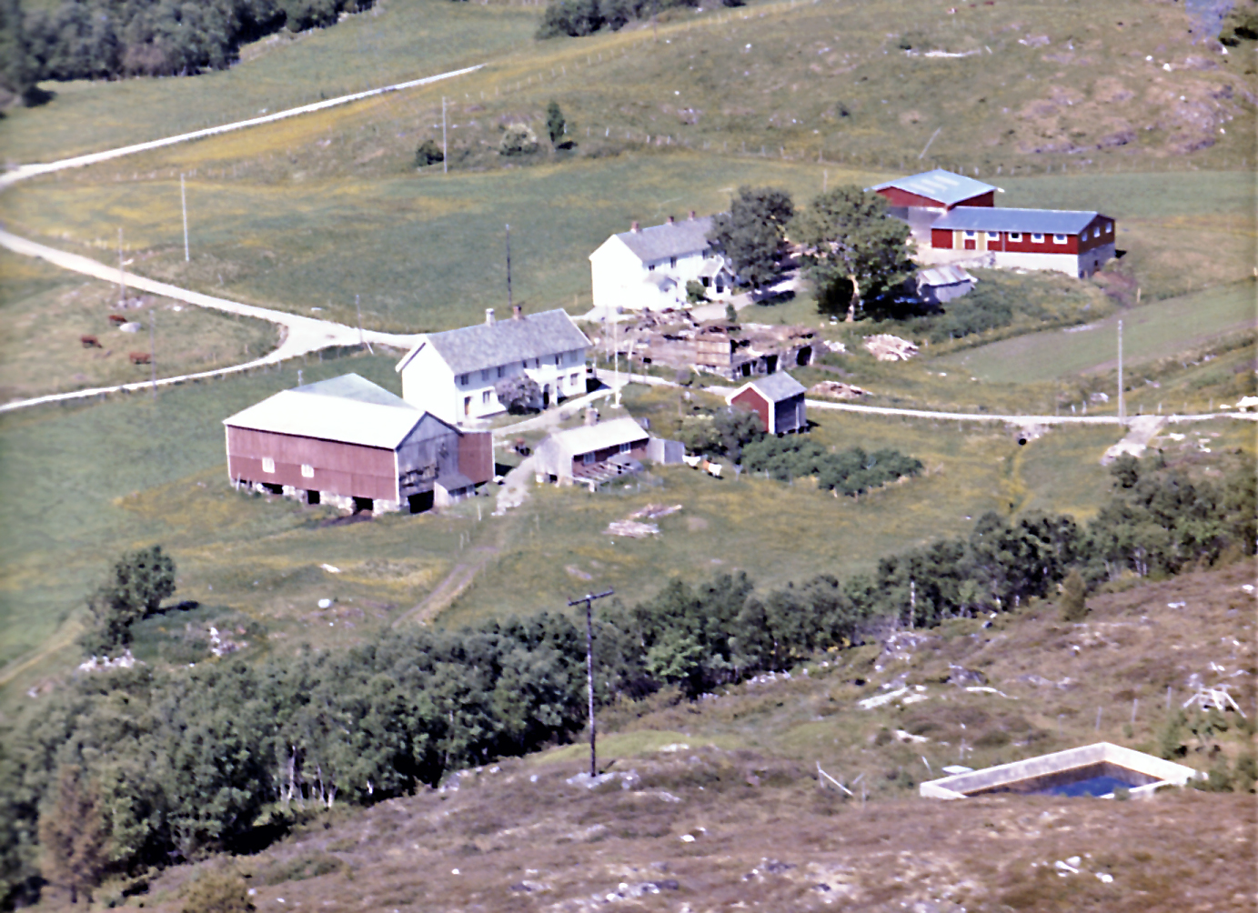 Eiendommen foran er g.nr 29, b.nr. 5 som tilhørte Jacob Hofstad (f. 1897) På andre siden av veien er g.nr. 4 som var eid av Rolf Fjeldberg (f. 1926)